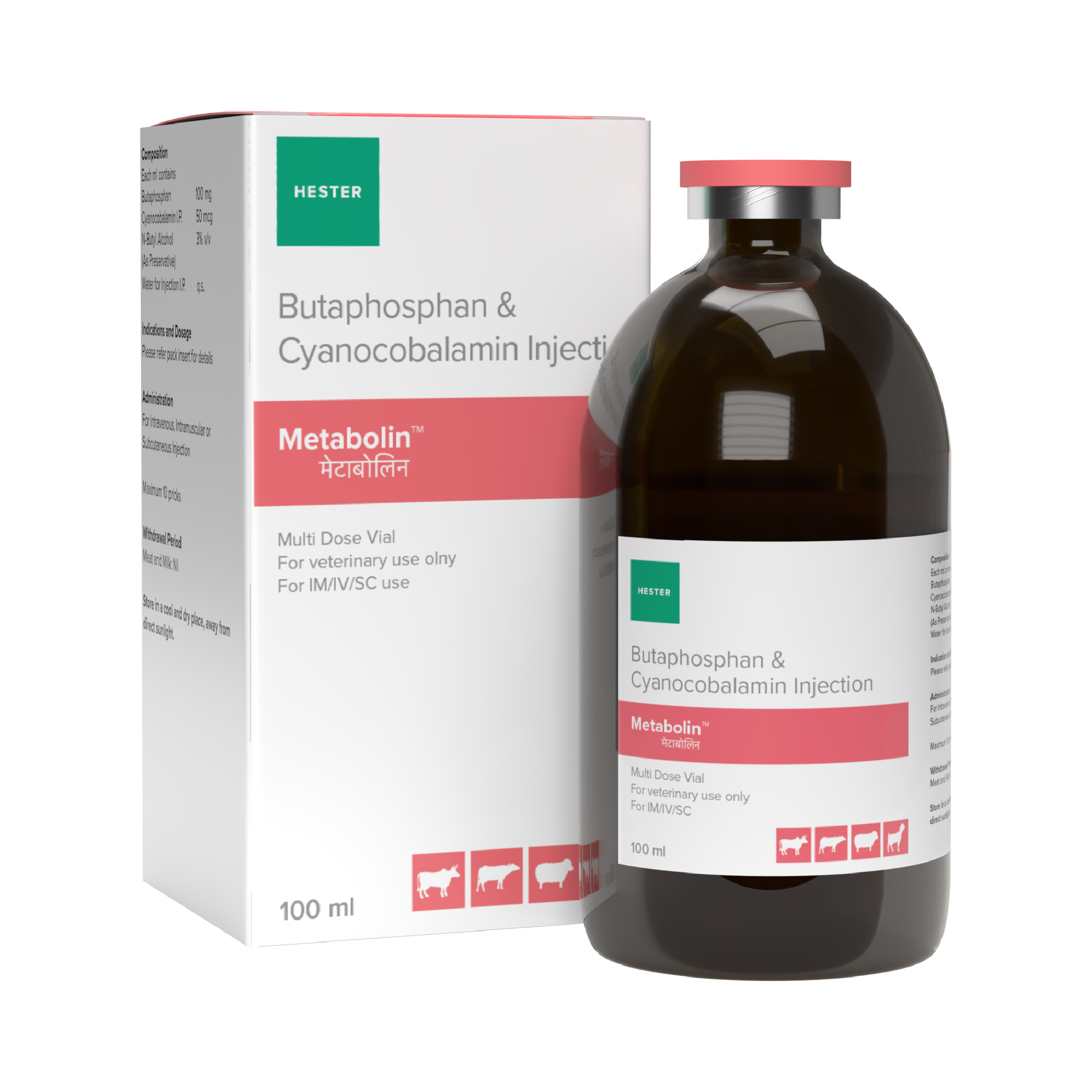 Each 1 ml dose contains Butaphosphan 100 mg and Cyanocobalamin 50 mcg.